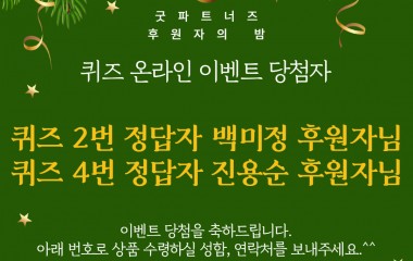 굿파트너즈 후원자 여러분 안녕하세요^^지난 24일에 온라인으로 생중계되었던 후원자의 밤! 활발히 즐겨주셔서 …