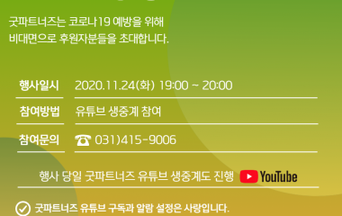 굿파트너즈 후원자의 밤 : 고마워요! Good-동행이야기 2020 ○ 일시 : 2020. 11. 2…